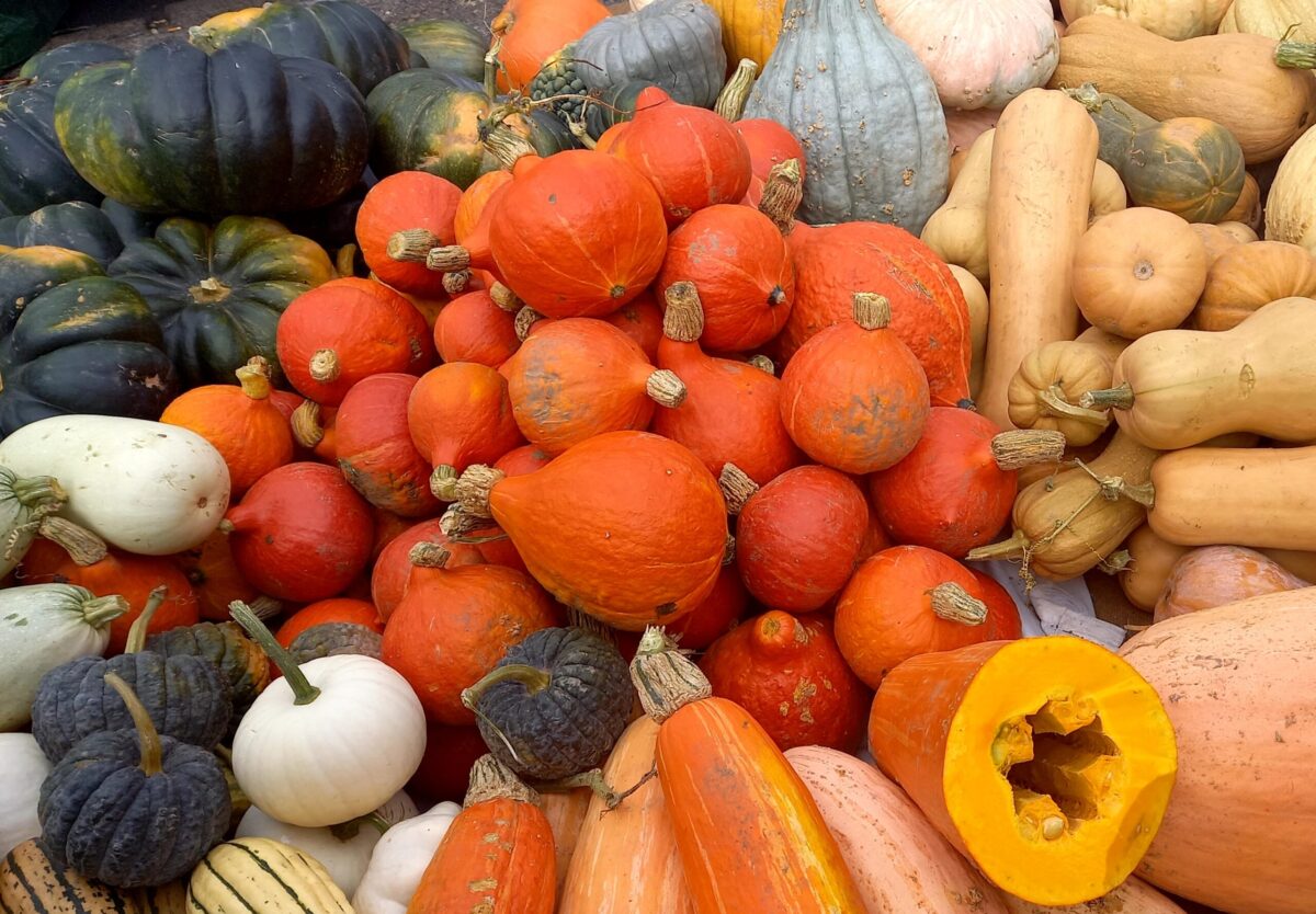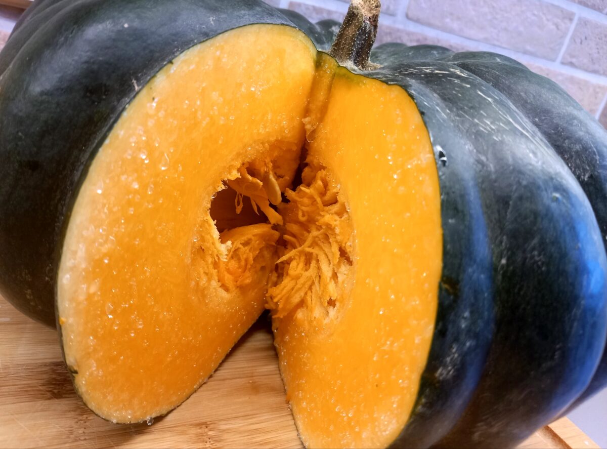 Najważniejszym składnikiem jest oczywiście dynia. Kilkanaście lat temu w sklepach i na lokalnych bazarach nie było zbyt dużego wyboru, o ile w ogóle. Na szczęście dzisiaj nie mamy już z tym problemu. Do przygotowania swoich pierogów wybieram dwa rodzaje; dynię muskat [zielona i płaska] i dynię piżmową.