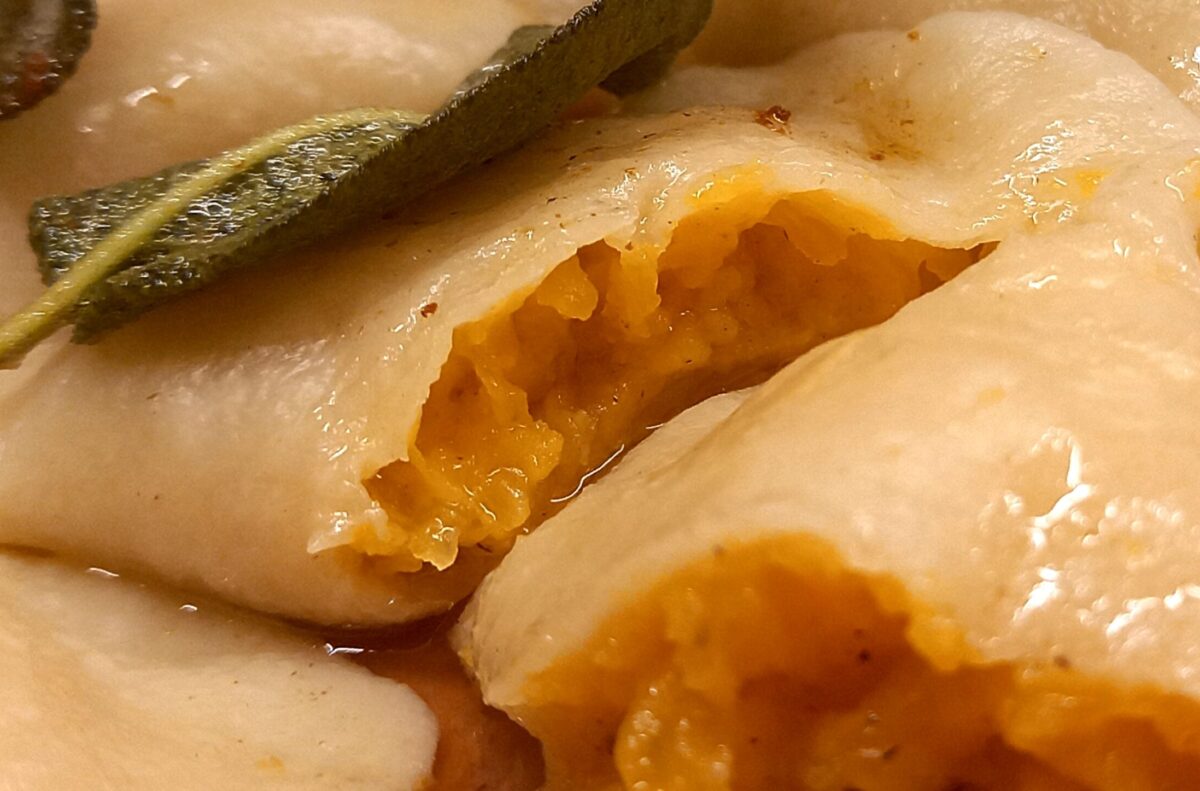 Przyznam się, że lepienie pierogów nigdy nie nalezało do moich ulubionych czynności. Nie wyobrażam sobie jednak świąt bez własnoręcznie ulepionych pierogów i uszek z grzybami. Teraz nie wyobrażam sobie jesieni bez pierogów z dynią i masłem szałwiowym. Jem je cały październik, częstuję bliskich i mrożę z nadzieją, że tym razem doczekają chociaż grudnia. Kilkanaście lat temu spróbowałam włoskie cappelletti alla mantovana i stały się one jednym z moich ulubionych dań. Spolszczyłam jednak nieco przepis, który znajdziecie poniżej. Nasze pierogi są większe więc robi się szybciej, a wszystkie składniki łatwo dostępne więc każdy może je zrobić.