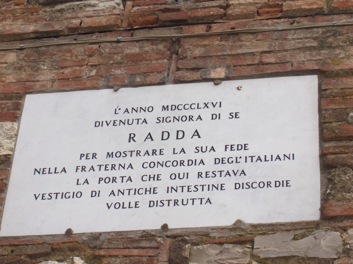 W planach było zwiedzenie kilku miasteczek, zobaczyłyśmy dwa. Zrezygnowałyśmy z zobaczenia Greve in Chianti, w którym znajduje się zakon Franciszkanów. Nie dojechałyśmy do Gaiole, będącego głównym miastem targowym w okolicy, uznanym przez amerykański magazyn [dziś już nie pamiętam który] jako najbardziej idylliczne miejsce do zamieszkania w Europie. Natomiast Radda i Castellina wynagrodziły nam początkowy smutek, że coś musiałyśmy odpuścić. Pierwsze to chyba najbardziej ukwiecone miejsce, które widziałam w Toskanii. W którym jadłam najpyszniejszą lasagne w życiu i które cieszyło oczy wspaniałymi krajobrazami. Castellina in Chianti to miasto o historycznej oraz arystokratycznej przeszłości. Zostało zbudowane w XII w. na grzbiecie góry w miejscu rzymskich ruin. Castellina zawdzięcza swój XIV – XV-wieczny charakter wielu budynkom o charakterze religijnym, w tym parafialnemu kościołowi San Salvatore. Elegancka na zewnątrz , wewnątrz tajemnicza i gorąca. Pojechałyśmy tam na Pentecoste, tzn. święto wina. Niesamowita atmosfera udzielała się każdemu. Kupiłam tam dwa wina, jedno wypiłyśmy z Turczynkami pod koniec naszego Erasmusa, drugą zabrałam do Polski, miałam ja otworzyć po obronie, doczekała chyba jedynie moich urodzin 🙂