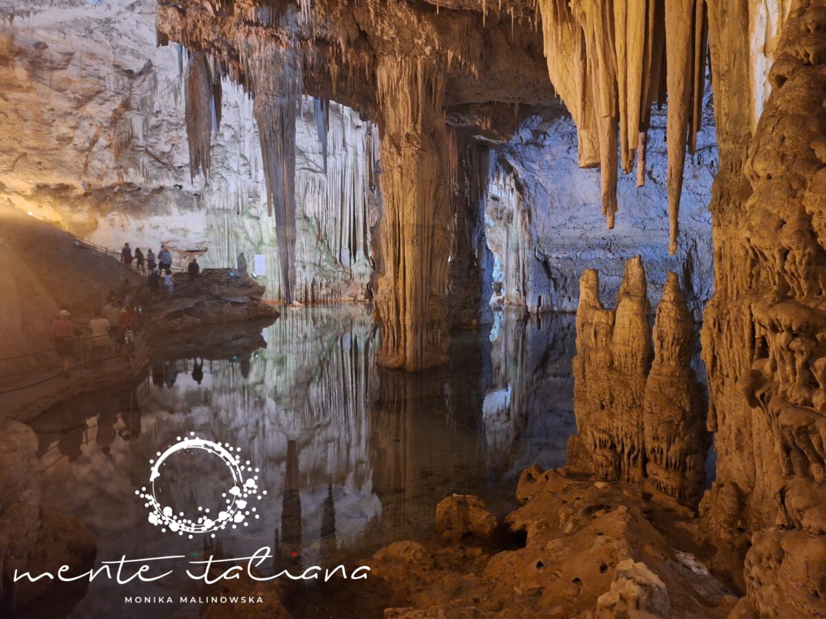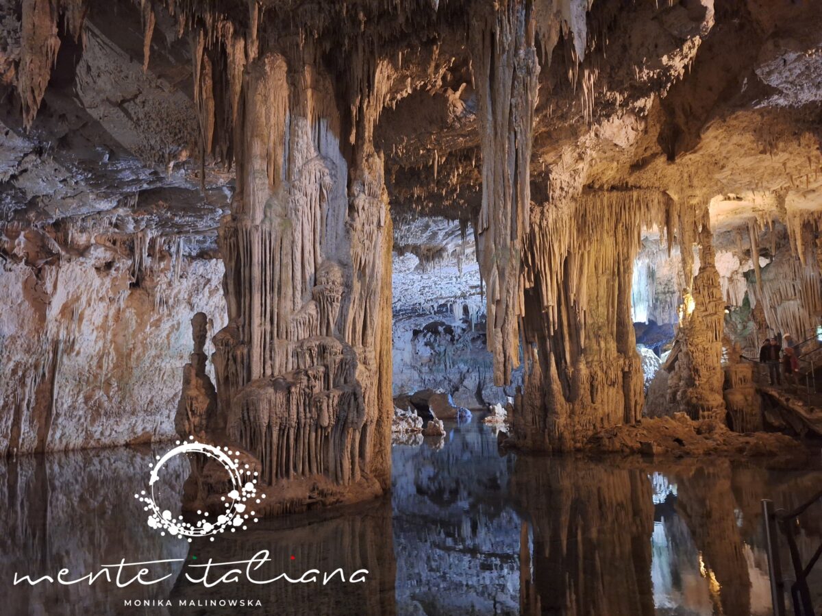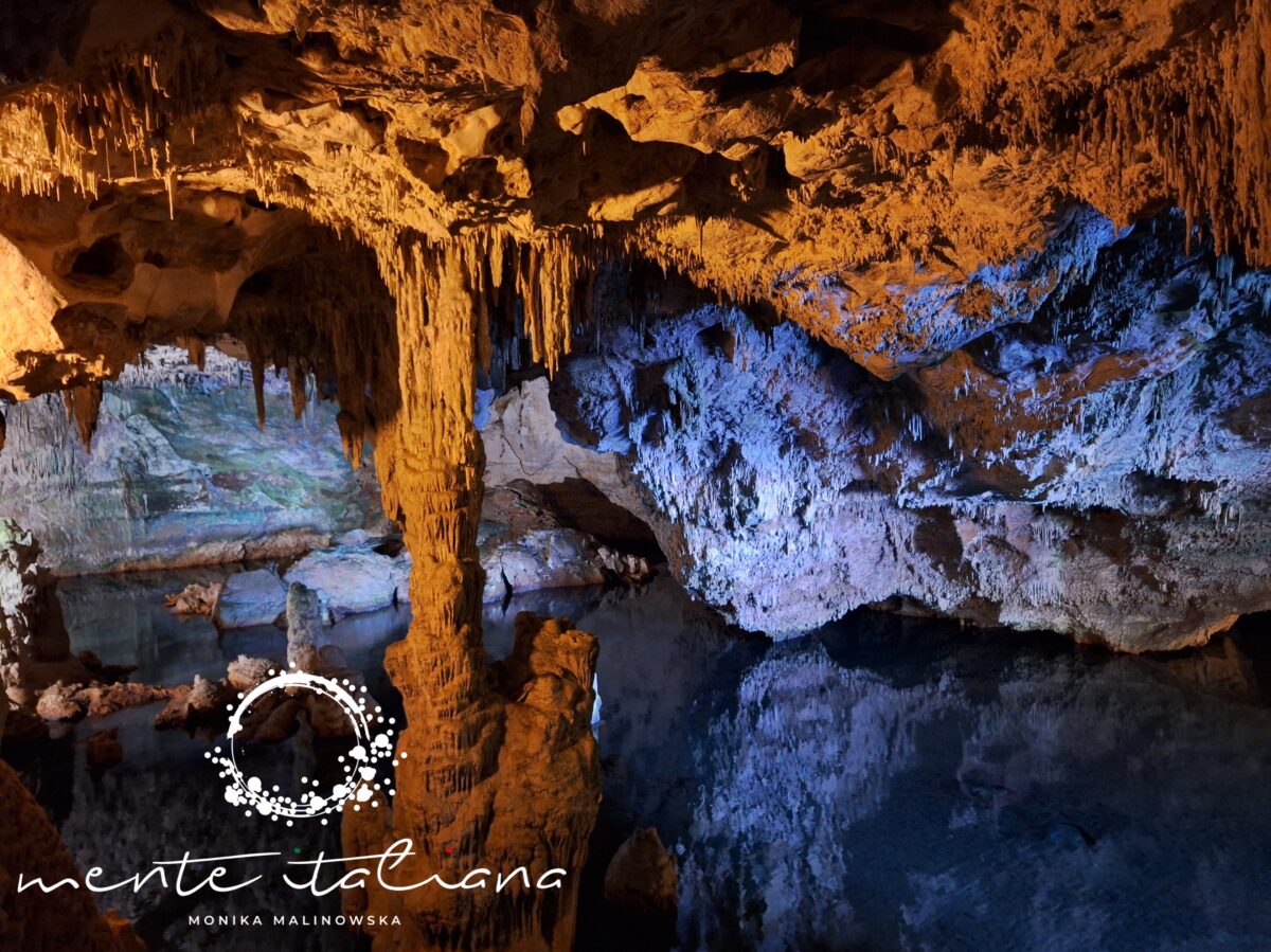 Największe wrażenie robi Lago Lamarmora – krystalicznie czyste jezioro wewnątrz jaskini, nieruchome jak tafla szkła. Światło z reflektorów odbija się od jego powierzchni jak od lustra, a cisza jest niemal absolutna. To jedno z tych miejsc, w których czujesz się malutka – nie ze strachu, tylko z podziwu dla matki natury i tego co stworzyła.