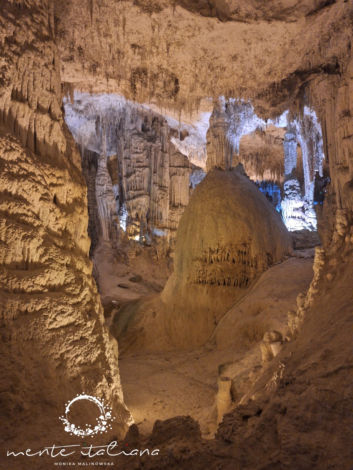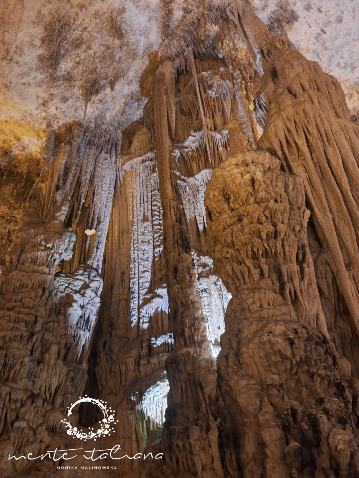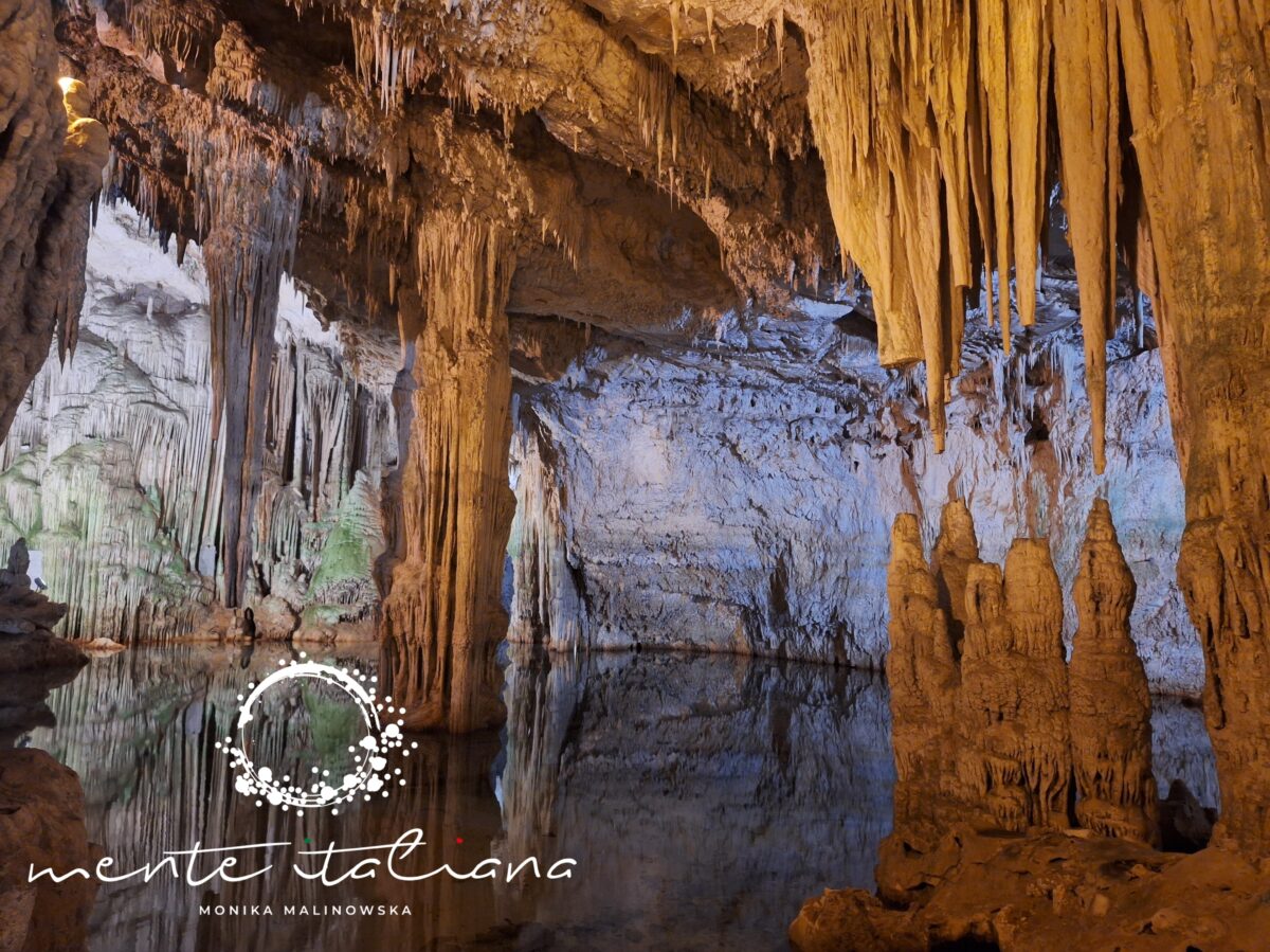 Największe wrażenie robi Lago Lamarmora – krystalicznie czyste jezioro wewnątrz jaskini, nieruchome jak tafla szkła. Światło z reflektorów odbija się od jego powierzchni jak od lustra, a cisza jest niemal absolutna. To jedno z tych miejsc, w których czujesz się malutka – nie ze strachu, tylko z podziwu dla matki natury i tego co stworzyła.