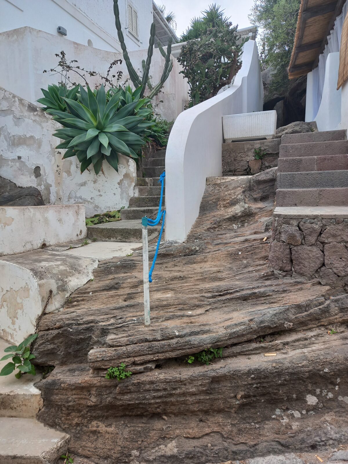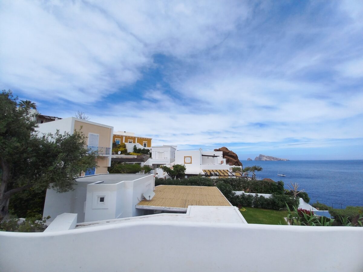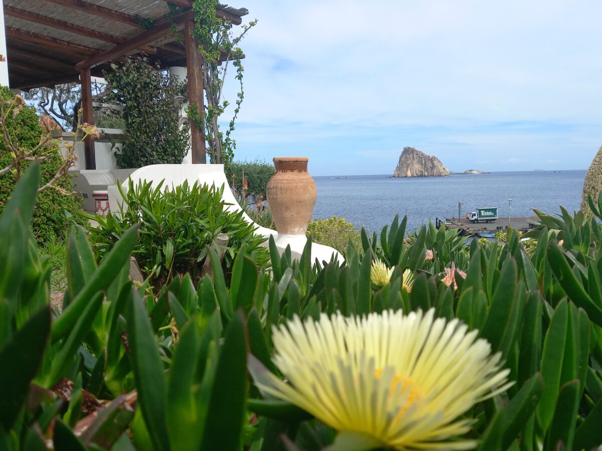 Po około półtoragodzinnym, nie najprzyjemniejszym rejsie [kołysało i bujało niemiłosiernie], dalekim od naszych wyobrażeń dotarłyśmy na miejsce. Pierwsze co widzimy zbliżając się do wyspy to piękne formacje skalne – Scoglio Brigantino, następne pojawiają się białe domki wzdłuż wybrzeża i malutki port będący wybawieniem dla tych którzy odkryli, że cierpią na chorobę morską. Większość osób z nami podróżujących zatrzymała się w barach i restauracjach znajdujących się nad brzegiem. My natomiast czując grunt pod nogami, odzyskawszy równowagę ruszyłyśmy na spacer. Udałyśmy się w kierunku kościoła, skąd jak się okazało rozpościera się przepiękna panorama okolicy. Spacerując po wyspie miałyśmy wrażenie, że znajdujemy się nie we Włoszech, a w Grecji. Białe, proste domy z niebieskimi drzwiami lub okiennicami, w ogrodach mnóstwo kolorowych kwiatów, drzew oliwnych, winorośli. Zapach cytryn mieszający się z zapachem rozmarynu. Panarea jest najmniejszą [zaledwie 3,4 km2] i najstarszą z wysp archipelagu Eolskiego. Zamieszkiwana zaledwie przez 300 osób. Pomimo swych niewielkich rozmiarów jest niezwykle elegancka i urokliwa. Mała perełka warta odwiedzenia. Cisza i spokój, brak samochodów i wszechogarniające piękno.