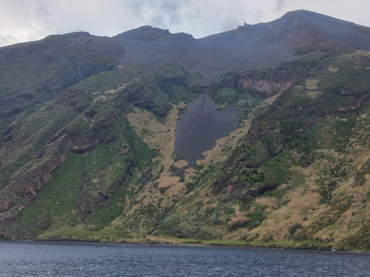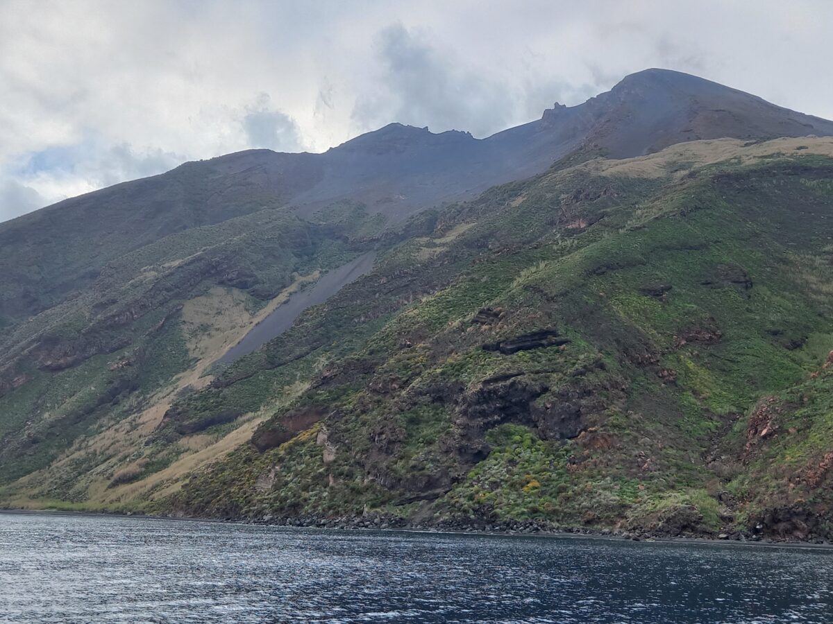 Panarea nas zachwyciła, pora jednak było płynąć dalej. W planach było odwiedzenie jeszcze jednej wyspy, która elektryzowała i fascynowała nas najbardziej. Po drodze minęłyśmy małą wyspę Basiluzzo, która dostępna jest dla posiadaczy mniejszych łodzi motorowych czy jachtów. Znajduje się tam Grota Miłości i niewielka plaża. Relaksowaliśmy się na pokładzie, korzystaliśmy ze słońca i pięknych widoków. Aż w końcu na horyzoncie pojawiła się ona wyspa-wulkan i wtedy przeszedł mnie dreszcz, nie ostatni tego dnia. Stromboli jako jedyna z wysp Eolskich charakteryzuje się stałą aktywnością wulkaniczną, z eksplozjami typu strombolijskiego [występującymi tylko tam] podczas których w górę na wysokość 10-20 metrów wyrzucane są bomby wulkaniczne, lapille, popioły i bloki skalne. „Zwykłe” wybuchy występują 3-4 razy na godzinę. Wg analiz włoskich naukowców, którzy analizują skład magmy stwierdzili, że wewnątrz wulkanu doszło w ostatnich latach do zmiany kierunku przepływu magmy. Kolejne erupcje mogą bowiem okazać się gwałtowniejsze i bardziej nieregularne, a ich obserwacja – coraz trudniejsza. Obecnie jednak wyspa jest jedną z najlepiej monitorowanych stref sejsmicznych na świecie. Na wyspie ma miejsce siedziba/oddział bazy wulkanicznej [współpracującej z Narodowym Instytutem Geofizyki i Wulkanologii Uniwersytetu we Florencji] dzięki któremu już wielokrotnie udało się prawidłowo odczytać sygnały wysyłające przez Stromboli i ostrzec mieszkańców.