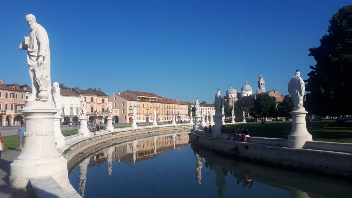 Mieszkańcy Padwy są niezwykle dumni z wielkości placu o eliptycznym kształcie Prato della Valle (88 620 m2)!!! Jest to drugi pod względem wielkości, po Placu Czerwonym w Moskwie plac w Europie. Stojąc na samym jego środku, na wyspie centralnej, zdajemy sobie sprawę jak jest ogromny!! Wokół wyspy znajduje się 1,5 km kanał, z podwójnym rzędem ponumerowanych posągów słynnych osobowości. Jest ich 78, a wśród nich również Polacy: Jan III Sobieski i Stefan Batory. Na wyspę centralną na której środku znajduje się fontanna, prowadzą cztery drogi przez mosty.