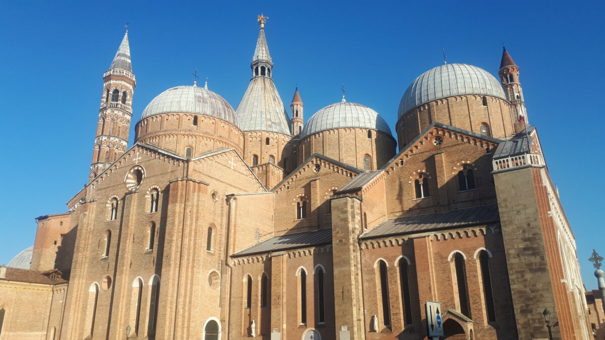 Bazylika św. Antonio [tego od zguby] to miejsce kultu, cel pielgrzymek wiernych z całego świata. Ten majestatyczny budynek zasługuje jednak na wizytę przede wszystkim ze względu na obecność wielu arcydzieł sztuki włoskiej. Nie musimy znać wszystkich nazwisk, ale i tak patrząc wiemy, że były one tworzone przez wspaniałych, utalentowanych architektów i artystów.To co rzuca się nam w oczy to współistnienie różnych dzieł sztuki: romańska fasada, gotycki ambulatorium z siedmioma kaplicami, bizantyjskie kopuły i mauretańskie dzwonnice. Wewnątrz, począwszy od prawej, kaplica Gattamelata i freski San Giacomo z 1300 r. autorstwa Andriolo de Santi, jednego z największych weneckich architektów i rzeźbiarzy tamtych czasów. Kaplica ukrzyżowania to dzieło wielkiego Giotto. Na nas największe wrażenie zrobiło przepiękne sklepienie, można było się na nie patrzeć w zachwycie bez przerwy. Równie duże wrażenie robi ściana całkiem pokaźnych rozmiarów ze zdjęciami zaginionych bliskich i prośbami do świętego o pomoc w ich odnalezieniu. Bez względu czy jesteśmy wierzący czy nie, nikogo to miejsce nie pozostawia obojętnym.