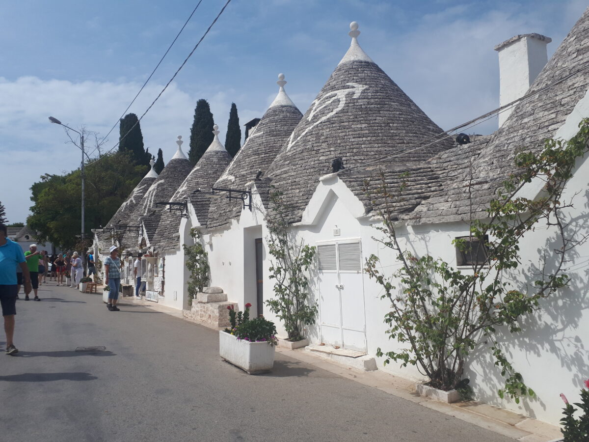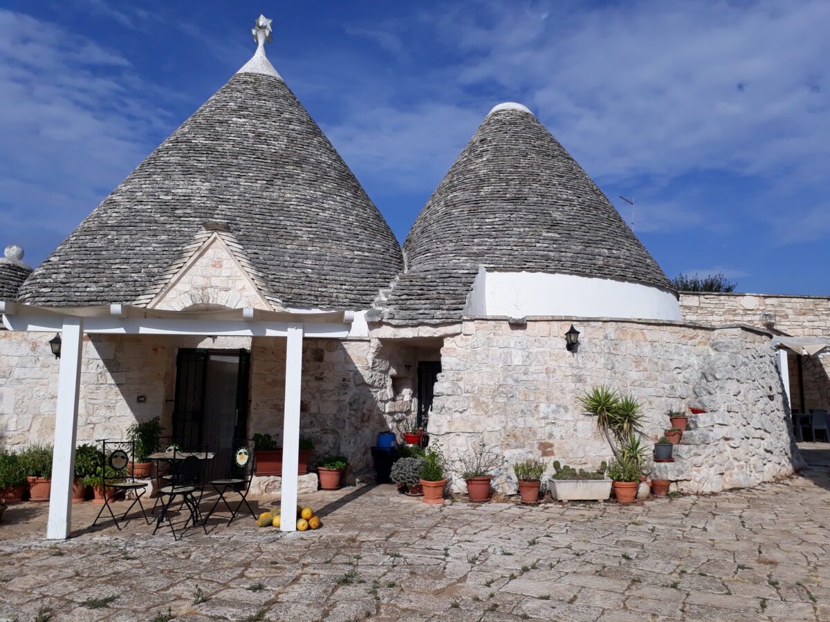 Valle d’Itria bardziej znana jako Valle dei Trulli to kraina geograficzna znajdująca się u styku trzech pulijskich prowincji: Brindisi, Taranto i Bari. Nachodzi na południową część płaskowyżu Murge. Trulli, wyjątkowe na skalę światową białe domki ze spiczastymi dachami, na zdjęciach wyglądają niczym domki krasnoludków. Pochodzenie ich jest do dzisiaj niewyjaśnione. Trulli są tak zaprojektowane, że zimą dają ciepło, a latem chłód. Konstrukcja idealna w klimacie śródziemnomorskim, zadziwiające jest więc, że występują tylko na południu Włoch, na stosunkowo niewielkim obszarze. Jedna z teorii powstania domków mówi o sprycie mieszkańców zamieszkujących owe tereny. Budynki w trakcie budowy, niewykończone nie podlegały opodatkowaniu. Apulijczycy więc nie wykorzystywali zaprawy budując trulli tak aby w razie kontroli cesarskich urzędników móc je szybko rozebrać i uniknąć kary. Równie szybko można był te domki później złożyć.