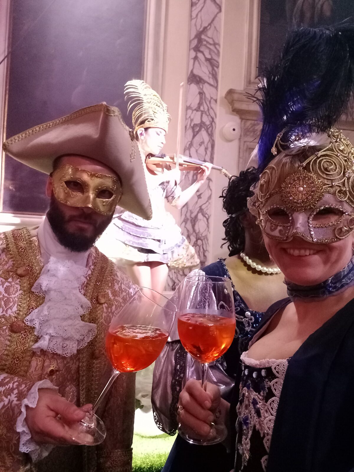 Moim marzeniem od zawsze było wybrać się na prawdziwy, wenecki bal maskowy. Przed wyjazdem długo zastanawialiśmy się które z tak wielu wspaniałych wydarzeń wybrać. Ostatecznie zdecydowaliśmy się na oficjalną imprezę organizowaną przez Comune di Venezia, na The Original Dinner Show & Ball „Original Sinners” w Palazzo Ca Vandreminn nad Canale Grande. Nie zawiedliśmy się. Zachwycające wnętrza Casino di Venezia, przepiękna scenografia, pięknie zastawione stoły, pyszne jedzenie, wyjątkowa i idealnie dobrana oprawa muzyczna, występy wielu artystów, wspaniałe stroje A magiczny wieczór, noc należą zdecydowanie do jednych z najpiękniejszych w moim życiu. Są niczym sen z którego człowiek nie chce się obudzić.