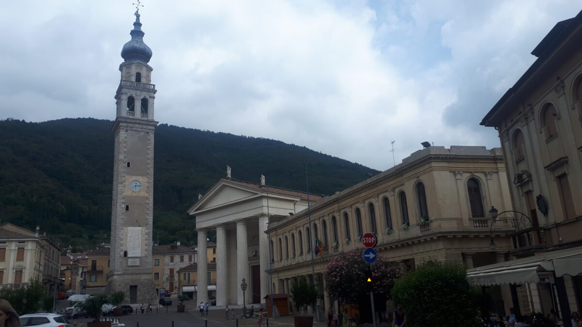 Valdobbiadene to malutkie miasteczko zamieszkałe przez nieco ponad 10 tyś mieszkańców, powstało już w XI wieku i aż do zjednoczenia Włoch było pod panowaniem Wenecji. Architektonicznym symbolem miasta jest dzwonnica na placu Marconi z pięknym zegarem słonecznym. Sam plac to serce miasteczka, znajduje się tu również neoklasycystyczna katedra Santa Maria Assunta z XV wieku, przebudowana po bombardowaniach z czasów I Wojny Światowej. Podziwiałyśmy zabytki degustując bollicine z okolicznych winnic. W miasteczku o dziwo nie było turystów, co sprawiło, że było jeszcze przyjemniej. Bez tłumów, bez selfie, bez pośpiechu. Miejscowi polecili nam małą trattorię –  miejsce niepozorne, ale z pysznym jedzeniem! [Przyznaję się początkowo nawet nie chciałam tam wejść. Poszłyśmy tam i zawróciłyśmy. Gdy zaś druga i kolejna osoba podała tą samą nazwę, wróciłyśmy] Ręcznie robiony makaron, z grzybami z okolicznych lasów i miejscowe prosecco. Proste, nieprzekąbinowane smaki, z dobrych produktów, co może być lepszego?? Po obiedzie wybrałyśmy na kilkukilometrowy spacer Strada del Prosecco otoczone winnicami i pięknymi krajobrazami po prostu cieszyłyśmy się chwilą. La vita e’ bella!