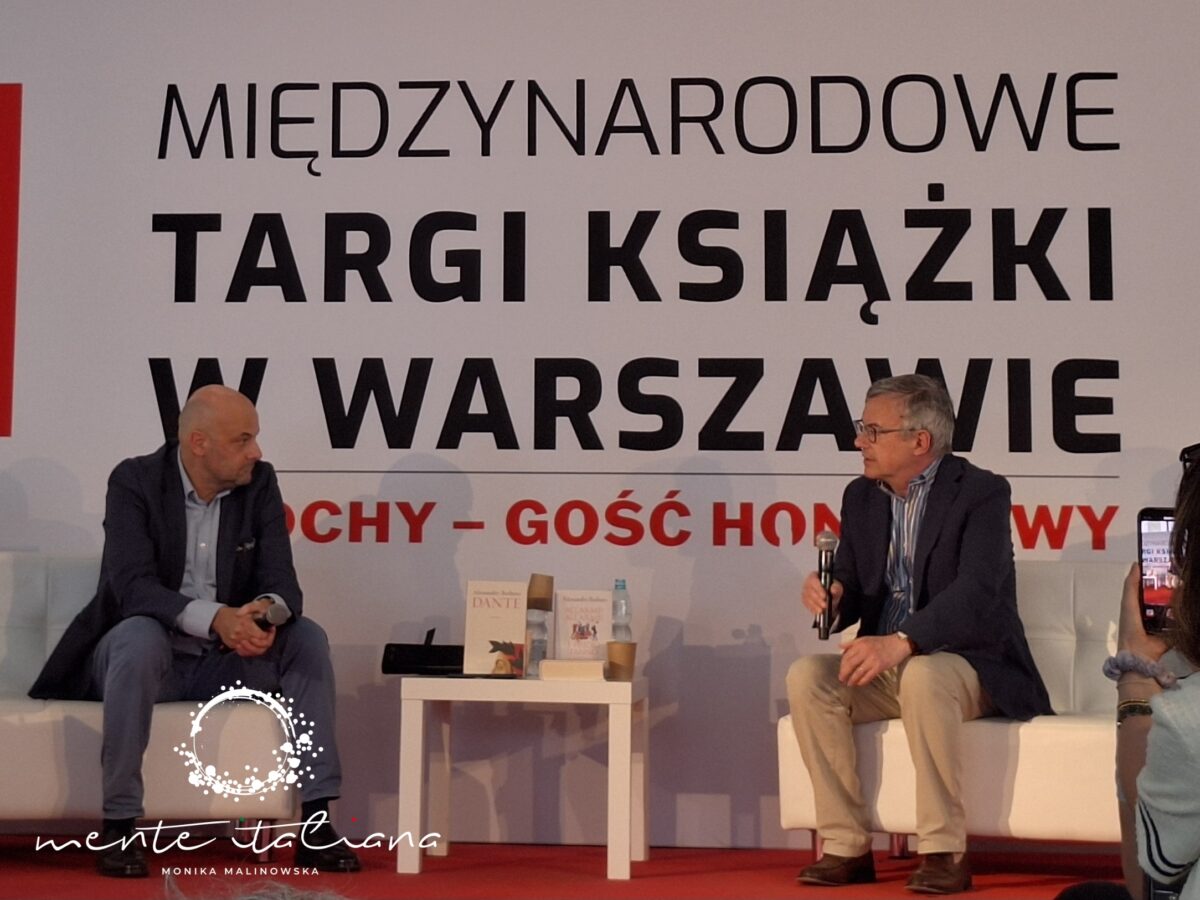 Spotkaniem na które czekali wszyscy Włosi mieszkający w stolicy to wywiad przeprowadzony przez redaktora Gazzetta Italia Sebastiano Giorgi z uwielbianym Alessandro Barbero. Słynny historyk, opowiadający i odkrywający sekrety historii w niezwykle fascynujący i porywający sposób. Namiot w którym odbywało się wystąpienie Barbero pękał w szwach, a owacjom nie było końca. Najbardziej charyzmatyczny z włoskojęzycznych gości w czasie całych targów. Profesor opowiadał o renesansie zainteresowania historią, która przejawiającym się sprzedażą powieści historycznych i chętnie oglądanymi filmami kostiumowymi. O podobieństwach między naszymi oboma narodami, o Polsce i Włoszech, które mają podłoże w przeszłości. O tworzeniu historii oraz o tym jak nasze czasy będą mogły być oceniane przez historyków za 100 lat. Pozostał niedosyt i chęć na kolejne spotkania z profesorem.