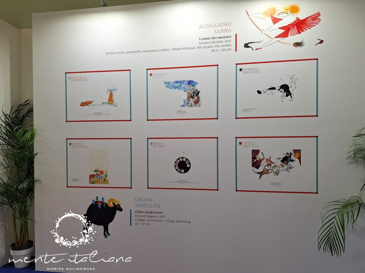 W Sali Marmurowej i przed Salą Goethego Pałacu Kultury i Nauki, gdzie mieścił się włoski pawilon były dwie wystawy, które cieszyły się ogromnym zainteresowaniem. Mogliśmy podziwiać dzieła: rysunki i grafiki włoskich ilustratorów książek. Mówi się w Polsce, żeby nie oceniać książki po okładce. Nie ukrywajmy jednak, że to okładka jest tym co widzimy najpierw biorąc książkę po raz pierwszy do ręki. To ona w dużej mierze może nas zachęcić lub zniechęcić do zakupu danej pozycji. Włoskie wydawnictwa zdają sobie z tego świetnie sprawę i bardzo często powierzają literaturę interpretacji ilustratorom.