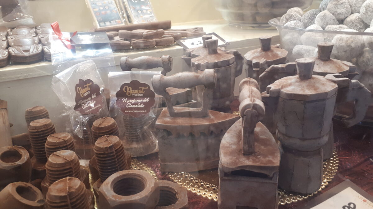 Nie sposób jest wymienić wszystkich turyńskich firm, miejsc, manufaktur, kawiarni związanych z czekoladą, ale gwarantuję gdziekolwiek się nie znajdziecie na pewno nie wyjdziecie  niezadowoleni 😀 Możecie co najwyżej dostać zawrotu głowy, jak ja podczas marcowych dni czekolady Dolci Portici. Na ulicach miasta wystawiają się lokalni cioccholatieri ze swoimi pysznymi wytworami. Wiele z nich to prawdziwe dzieła sztuki; cieszą nie tylko podniebienie, ale i oczy. Możemy skosztować tu przepyszne likiery, kremy czekoladowe, gianduotto, turyńskie baci di dama, czekolady, pralinki.